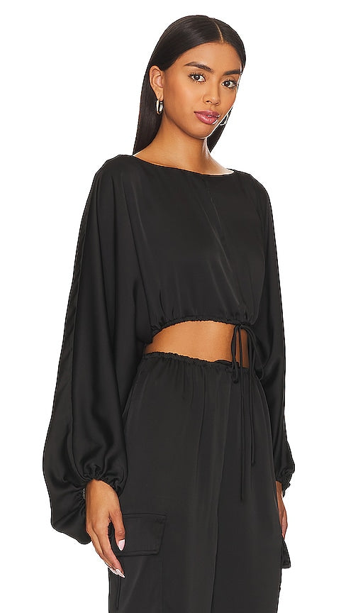 L'Academie Thais Top in Black. - size L (also in M, S, XS) L'Academie Thais Top in Black. - size L (also in M, S, XS) 100% polyester. Made in China. Hand wash. Drawstring hem and cuffs. Balloon sleeves. Satin fabric. Item not sold as a set. LCDE-WS1020. LAS761 U23. L'Academie has mastered the art of elegant, sophisticated dressing with chic and polished pieces complete with stylish details. These contemporary pieces are effortlessly easy to style with your favorite denim or classic heels. Shop the latest in fashion from L'Academie