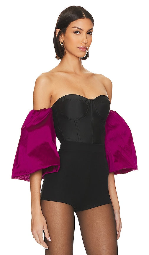 MISA Los Angeles Dita Top in Black. - size M (also in S, XS) MISA Los Angeles Dita Top in Black. - size M (also in S, XS) Viscose blend. Imported. Dry clean recommended. Hidden back zipper closure. Off-shoulder styling with exaggerated sleeves with elastic cuffs. Padded underwire cups. Boned bodice. MISA-WS268. PGTP8724. Shadi Askari-Farhat, the designer behind Tbags Los Angeles, launched MISA in Spring 2016. A combination of her daughter's names, Milla and Sayeh, the label embodies the natural evolution of the designer with an elevated femininity and sophistication. Deeply inspired by her travels and love for global style, MISA is for the modern-day bohemian who spends her life travelling the world, leaping from one exotic location to another. Shop the latest in fashion from MISA Los Angeles