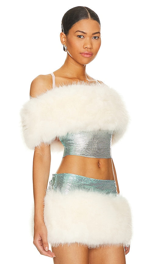 Poster Girl Bonny Fur Top in Teal. - size L (also in S, XS) Poster Girl Bonny Fur Top in Teal. - size L (also in S, XS) Self: 100% aluminum mesh Lining: 93% polyamide 7% elastane Faux Fur: 100% polyester Lining: 100% polyester twill. Made in London. Dry clean only. Adjustable back straps. Chainmail fabric. Item not sold as a set. PGIR-WS31. AW23CM047. Shop the latest in fashion from Poster Girl