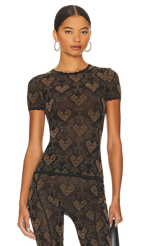 Poster Girl Scarlett Tee Flocked Mesh Fitted T-Shirt in Brown