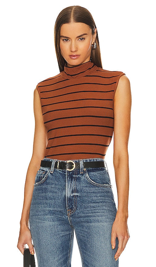 Sanctuary Essential Mock 2.0 in Brown. - size L (also in M, XL, XXS) Sanctuary Essential Mock 2.0 in Brown. - size L (also in M, XL, XXS) 92% rayon 8% spandex. Made in China. Machine wash. Mockneck styling. Lightweight ribbed knit jersey fabric. SANC-WS758. CT3577PA9. Design with reason, design with soul: give us the Sanctuary of fashion with sense. Shop the latest in fashion from Sanctuary