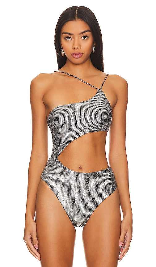 superdown Tahlia Cut Out Bodysuit in Metallic Silver - superdown Body découpé Tahlia en argent métallisé - superdown Tahlia 金属银色镂空连体衣 - superdown Tahlia Cut-Out-Body in Metallic-Silber - superdown Tahlia 컷아웃 바디수트 - Body superdown Tahlia ritagliato in argento metallizzato
