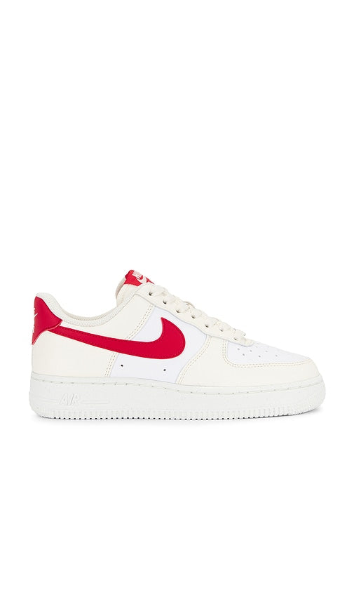 Leather upper with rubber sole. Lace-up front with silver-tone AF1 charm. Contrast Swooshes at side panels. Nike Air Force 1 logo patch at tongue. Low-cut collar with contrast back counter and embossed Nike Air logo. Perforated toe. NIKR-WZ1177. DC9486-109. Centered around humanity and athletic innovations, Nike believes that if you have a body, you are an athlete. From footwear to an incredible variety of clothing, Nike is about enhancing performance while looking and feeling your best. Many of their shoe styles have become rare collector's items because of their limited quantity and unique, yet classic design. Their-performance focused technologies have revolutionized athletic wear, while their exclusive fabrics such as Dri-Fit, AeroReact, and Storm-Fit highlight both function and aesthetics. Beyond apparel, Nike invests in the power of people, planet, and play with practices that seek to better serve the environment and support women in the workforce. Color: Pale Ivory University Red White & Sai. Shop Pale Ivory University Red White & Sai Lifestyle Sneakers for women and the latest Nike shoes now.