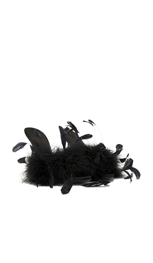 Paris Texas Lidia Feather Mule 105 in Black | Black Open Toe Mules for Women