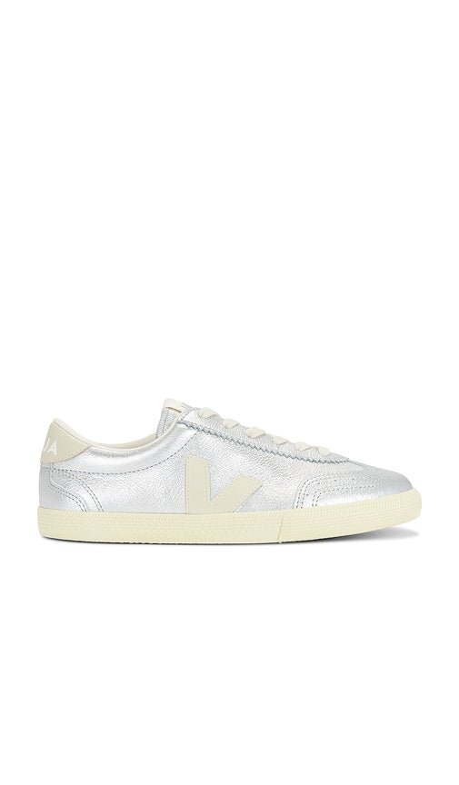 Metallic leather upper with Amazonian rubber sole. Made in Brazil. Lace-up front. Rubberized V at outer panels. Embroidered Veja logo patch at tongue. Lightly padded low-cut collar with printed Veja logo at back counter. VEJA-WZ285. VO2020749A400. Parisian based and Brazilian produced, sustainable sneaker brand Veja creates organic, innovative collections sourced from South America. 'Veja' translated from Portuguese-Brazilian dialect meaning 'look', aims for wearers to 'look beyond sneakers, look how they are made'. Their iconic silhouette naturally sourced from 100% organic cotton canvas and fairly traded rubber soles allows wearers to go about their day comfortably, all while leaving a positive impact on the environment. From linking together economic justice, social initiatives and sourcing products that impact the environment positively, Veja has proven that sustainable styles can also be deemed fashionable. Color: Silver & Pierrre. Shop Silver & Pierrre Low Top Sneakers for women and the latest Veja shoes now.