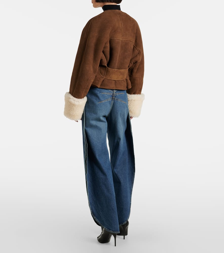 Material: 100% leather. Care instructions: do not wash. Made in France. Designer color name: Blanc/Brun. Closure: zipped front. Pockets: side slit pockets. Trim: 100% shearling. Shop the latest Alaia Shearling Jackets.