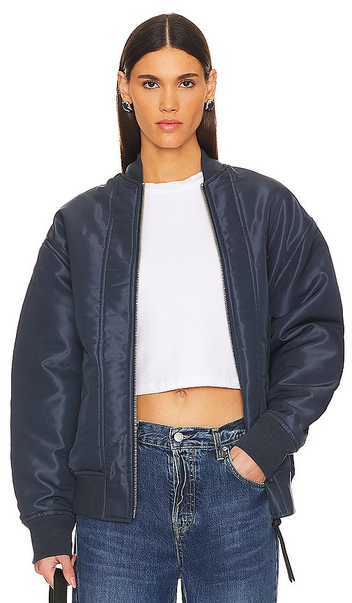 ALLSAINTS Scout Bomber in Navy. - size L (also in M, S, XS) ALLSAINTS Scout Bomber in Navy. - size L (also in M, S, XS) Self: 100% polyester Sleeve Lining: 57% viscose 43% cotton Rib: 97% cotton 1% elastane 1% polyester 1% elastodiene. Made in Turkey. Dry clean. Front zipper closure with leather pull. Ribbed trim. Heavyweight ripstop fabric with novelty terrycloth patch at front and embroidered tiger patch at back. ALLR-WO197. WO519Z. Founded in East London in 1994, AllSaints breaks through the noise to offer something different. Cult leather jackets and signature biker boots - it's what they do. Prints you weren't expecting, and accessories you'll keep coming back for. It's about innovation, about turning your back on the trends and making your own rules, a uniform without uniformity. AllSaints is an attitude, wear it your way. Shop the latest in fashion from ALLSAINTS