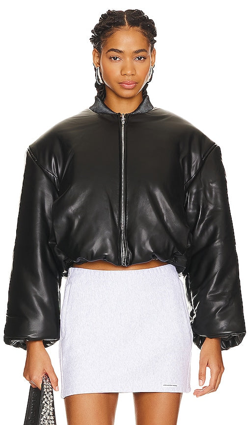 BLANKNYC Faux Leather Jacket in Black. - size M (also in S, XS) BLANKNYC Faux Leather Jacket in Black. - size M (also in S, XS) Self: 60% polyurethane 40% viscose Lining & Fill: 100% polyester. Made in China. Spot clean only. Front zipper closure. Side slip pockets. Heavyweight faux leather fabric with ribbed edges. BLAN-WO377. 01XP6995. Since exploding onto the scene in 2007 with the signature Studded Skinny Classique jeans, [BLANKNYC] has been creating approachable clothing in obsession-worthy fits, fabrics and design. The Manhattan-born brand couples aggressively modern silhouettes with the integrity of premium quality: a mash-up of stretch denim, vegan leather, plush knits and industrial hardware transform minimalist basics into runway relevance. Shop the latest in fashion from BLANKNYC