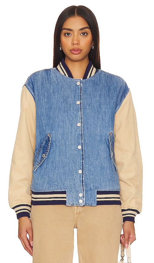 BLANKNYC Varsity Jacket in Blue. - size L (also in M, S, XS) BLANKNYC Varsity Jacket in Blue. - size L (also in M, S, XS) Self: 100% cotton Contrast Fabric: 95% cotton 5% spandex Lining & Fill: 100% polyester. Made in China. Machine wash. Front snap button closure. Side flap pockets with button closure. BLAN-WO374. 01NO5092. Since exploding onto the scene in 2007 with the signature Studded Skinny Classique jeans, [BLANKNYC] has been creating approachable clothing in obsession-worthy fits, fabrics and design. The Manhattan-born brand couples aggressively modern silhouettes with the integrity of premium quality: a mash-up of stretch denim, vegan leather, plush knits and industrial hardware transform minimalist basics into runway relevance. Shop the latest in fashion from BLANKNYC