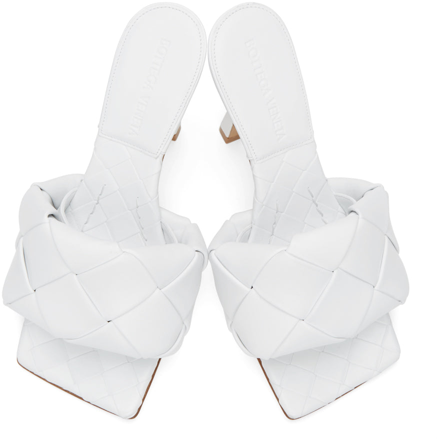 Bottega Veneta White Intrecciato Lido Heeled Sandals