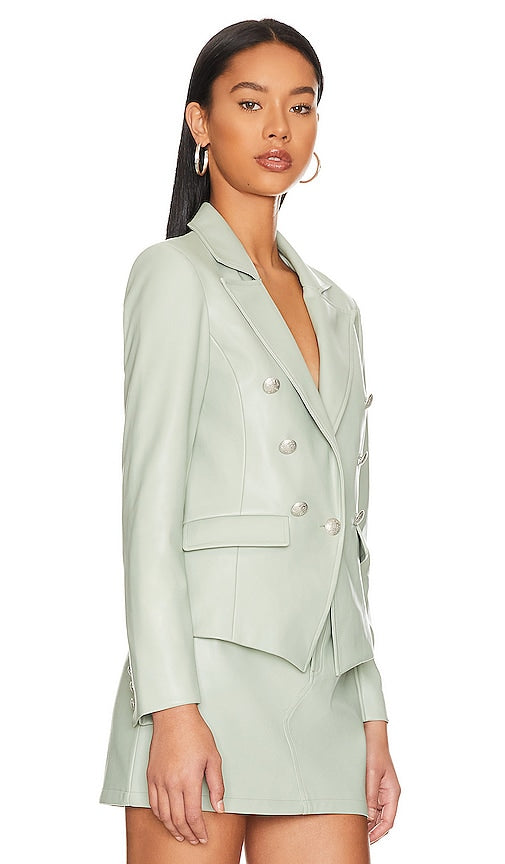 Central Park West Devon Blazer in Sage. - size L (also in M, S) Central Park West Devon Blazer in Sage. - size L (also in M, S) Polyurethane blend. Imported. Dry clean recommended. Front button closure. Front flap pockets. Button cuffs. Lightweight faux leather fabric with back vent. Item not sold as set. CENT-WO200. C13092S. Based in New York City, Central Park West creates new, fresh, and inspired designs for the edgy, trend conscious girl. By taking luxurious fabrics such as silk and cashmere and integrating design details such as sheer panels and peek-a-boo shirttail hems, Central Park West makes sure you stand out in a crowd no matter what side of town you're on. Shop the latest in fashion from Central Park West