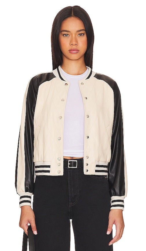 Central Park West Issa Quilted Bomber in Ivory,Black