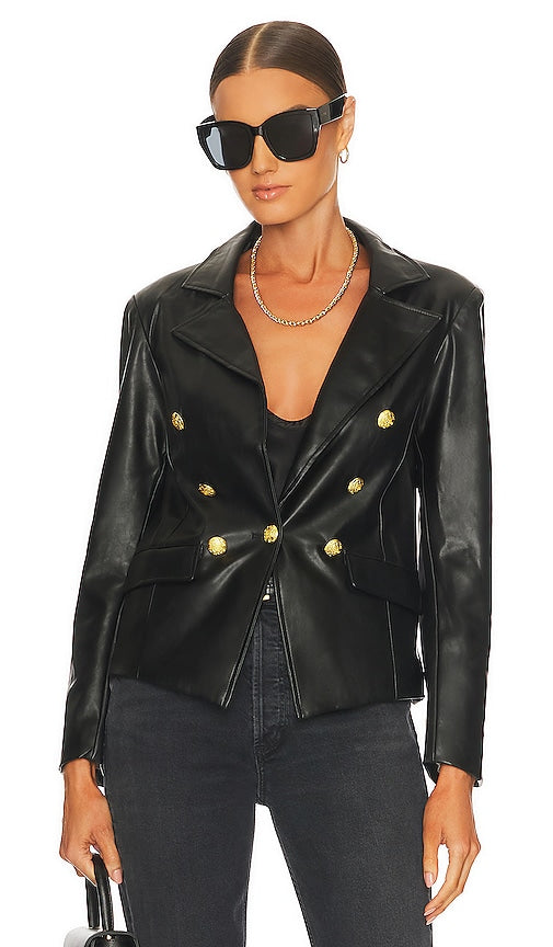 Central Park West Nico Faux Leather Blazer in Black. - size XS (also in S) Central Park West Nico Faux Leather Blazer in Black. - size XS (also in S) Faux leather blend. Imported. Dry clean recommended. Front button closure. Button cuffs. Front flap pockets. Smooth faux leather fabric with asymmetrical hem. CENT-WO189. C13092. Based in New York City, Central Park West creates new, fresh, and inspired designs for the edgy, trend conscious girl. By taking luxurious fabrics such as silk and cashmere and integrating design details such as sheer panels and peek-a-boo shirttail hems, Central Park West makes sure you stand out in a crowd no matter what side of town you're on. Shop the latest in fashion from Central Park West