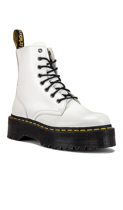 Dr. Martens Jadon Boot in White. - size 7 (also in 9) Dr. Martens Jadon Boot in White. - size 7 (also in 9) Leather upper with rubber sole. Lace-up front. Platform measures approx 1.5H. Shaft measures approx 6H. Decorative side zip detail. Listed in US sizing. Imported. DMAR-WZ290. 15265100. When the Dr. Martens boot first catapulted from a working-class essential to a counter-cultural icon back in the 1960s, the world was pre-internet, pre-MTV, pre-CD, pre-mp3s, pre-mobile phones. Hey, they'd only just invented the teenager. In the years before the boot's birthday, 1st April, 1960, kids just looked like tribute acts to their parents, younger but the same. Rebellion was only just on the agenda for some - for most kids of the day, starved of music, fashion, art and choice, it was not even an option. Shop the latest in fashion from Dr. Martens