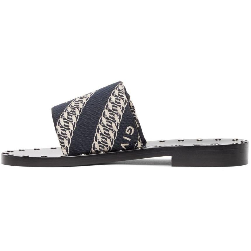 Givenchy Navy Jacquard Chain Mules - Mules de chaîne Jacquard Givenchy Navy Jacquard - 지방시 네이비 자카드 체인 노새