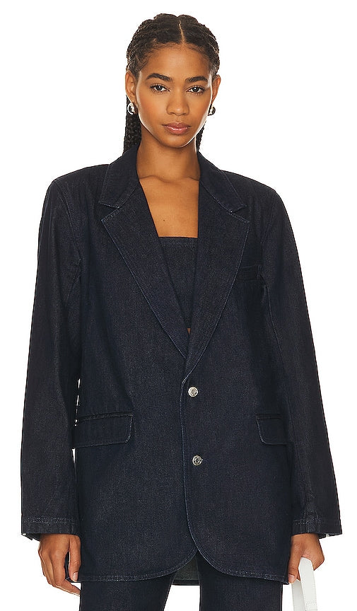 GRLFRND Sloane Denim Blazer in Blue. - size L (also in M, S, XL, XS, XXS) GRLFRND Sloane Denim Blazer in Blue. - size L (also in M, S, XL, XS, XXS) 100% cotton. Made in China. Machine wash. Singular front button closure. Padded shoulders. 3-pocket design. Button cuffs. Item not sold as set. GRLR-WO87. GF46701171972. Introducing your new GRLFRND. Based in LA, GRLFRND Denim crafts pieces focused on fit and individuality, blending unique details with vintage silhouettes. The premium denim label reimagines everyday staples with a contemporary vision, drawing inspiration from enduring styles and comfort. Bold, versatile, and unexpected - a fresh approach to classic denim. Explore the collection featuring remarkable ready-to-wear pieces designed with premium qualities and directional silhouettes to perfectly complement the denim Shop the latest in fashion from GRLFRND
