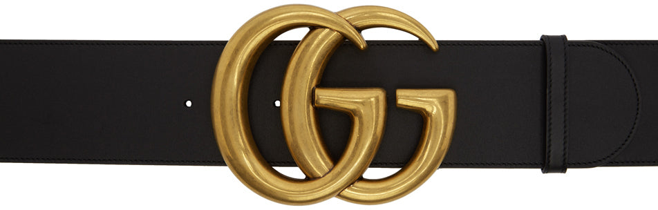 Buffed leather belt in black. Logo plaque at adjustable post-stud fastening. Gold-tone hardware. Approx. 2.5 width. Supplier color: Black Leather, brass. Brand: Gucci