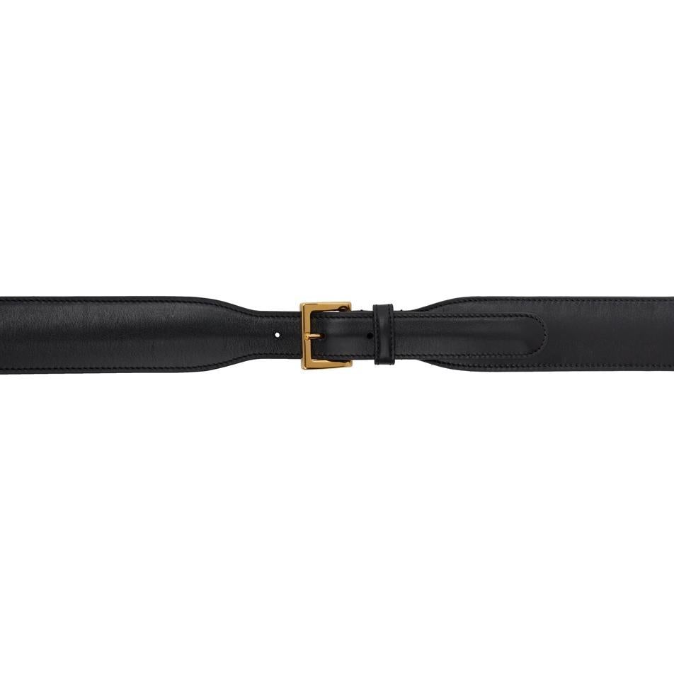 Buffed leather belt in black. Signature hardware at face. Adjustable pin-buckle fastening. Gold-tone hardware. Approx. 1.5 width. Supplier color: Black Leather. Brand: Gucci