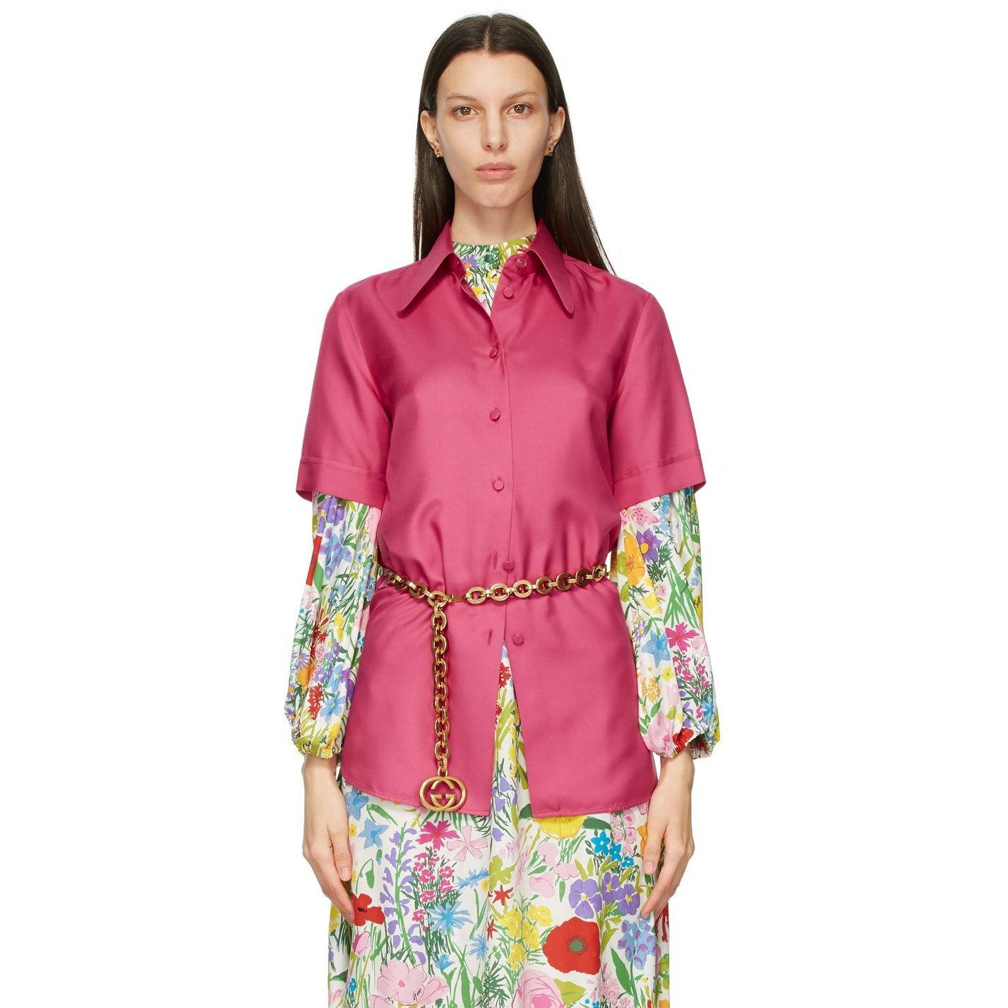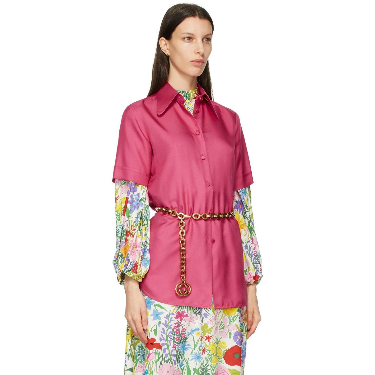 Chain link belt in antiqued gold-tone metal. Logo pendant at adjustable lanyard clasp fastening. Supplier color: Fenix Aurum Metal. Brand: Gucci
