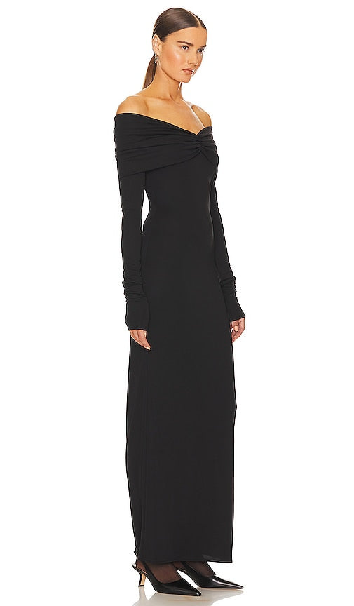 Helsa Matte Jersey Off Shoulder Maxi Dress in Black