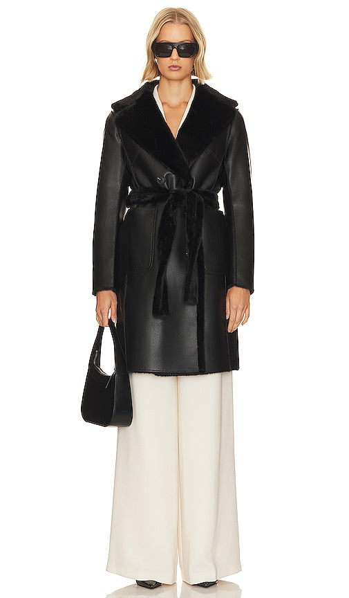 LAMARQUE Abigail Coat in Black. - size L (also in M, XS) LAMARQUE Abigail Coat in Black. - size L (also in M, XS) Self 1: 100% polyester Self 2: 100% polyurethane. Made in China. Dry clean only. Double breasted front button closure. Front patch pockets. Removable waist tie. Optional styling. Faux leather and faux fur fabric. LARX-WO247. ABIGAILBLK. LAMARQUE specializes in luxurious leather garments, contemporary apparel & elevated outerwear. Designed in Montreal by Creative Director Ifigenia Papadimitriou, the brand is committed to achieving the essence of urban elegance with each design, from polished silk blouses to classically cool leather bikers and everything in between. Season after season, the collection remains perfectly timeless, yet with an iconic, fashion-forward edginess. Shop the latest in fashion from LAMARQUE
