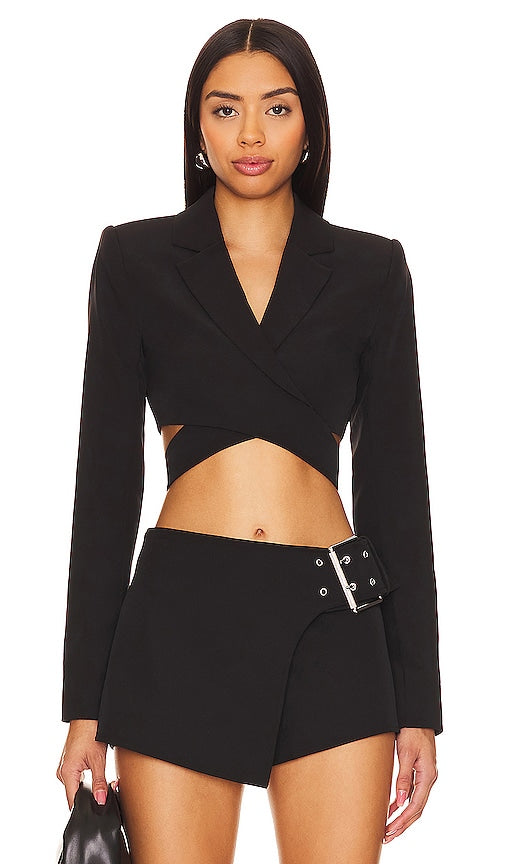 Lovers and Friends August Wrap Blazer in Black. - size L (also in M, S, XL, XS) Lovers and Friends August Wrap Blazer in Black. - size L (also in M, S, XL, XS) Unleash your inner trendsetter with the Lovers and Friends August Wrap Blazer in timeless black. This isn't just a blazer; it's a style manifesto. The padded shoulders add a touch of sophistication, while the chic wrap design and buckle closure at the back bring an edgy twist to classic elegance.. Self: 96% polyester 4% elastane Lining: 97% polyester 3% elastane. Made in China. Dry clean only. Wrap styling with silver-tone buckle closure. Padded shoulders with notched lapels. Lightweight crepe fabric. Item not sold as a set. LOVF-WO533. ACOW395 S24. Constantly inspired by the laid back Los Angeles lifestyle in which the brand was founded, Lovers and Friends exudes ease and wearability, creating an effortlessly chic look that is California cool. Shop the latest in fashion from Lovers and Friends