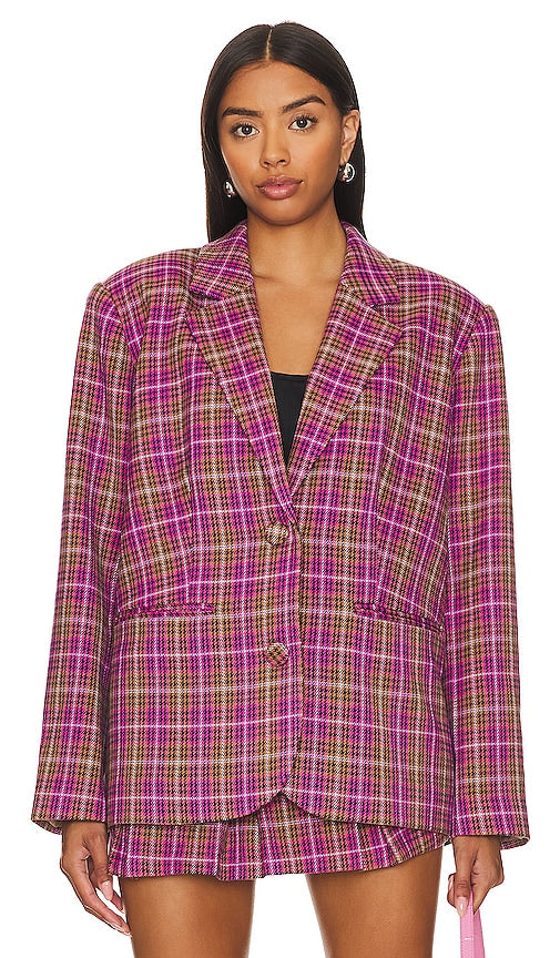 Lovers and Friends Heather Blazer in Pink. - size L (also in M, S, XS, XXS) Lovers and Friends Heather Blazer in Pink. - size L (also in M, S, XS, XXS) Self: 65% polyester 33% rayon 2% elastane Lining: 100% polyester. Made in China. Dry clean. Front button closure. Front welt pockets. Padded shoulders with notched lapels. Tweed fabric. Item not sold as a set. LOVF-WO503. ACOW364 F23. Constantly inspired by the laid back Los Angeles lifestyle in which the brand was founded, Lovers and Friends exudes ease and wearability, creating an effortlessly chic look that is California cool. Shop the latest in fashion from Lovers and Friends
