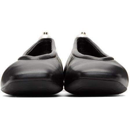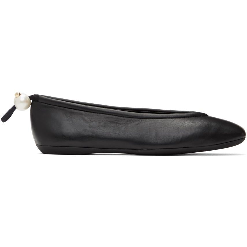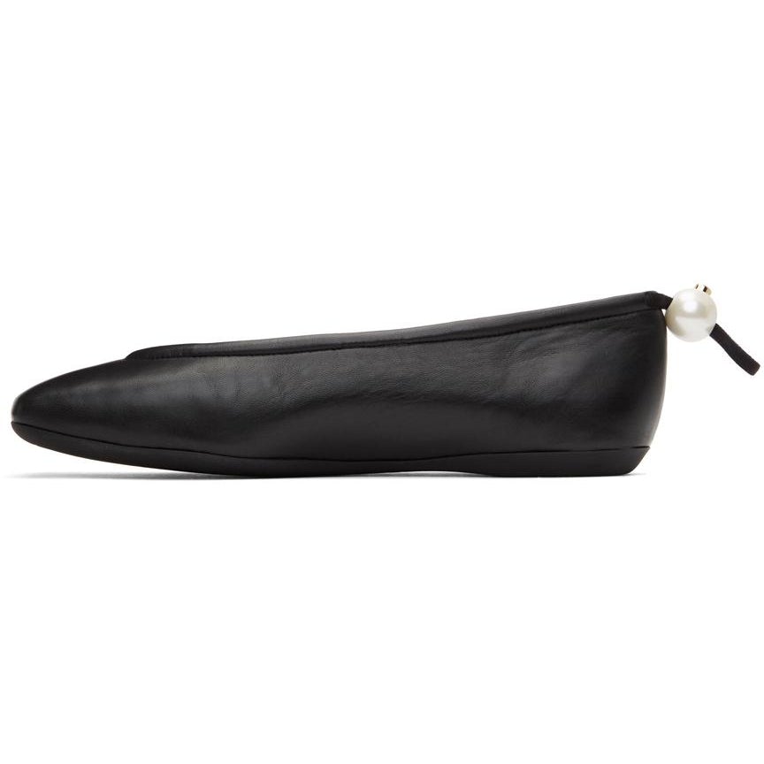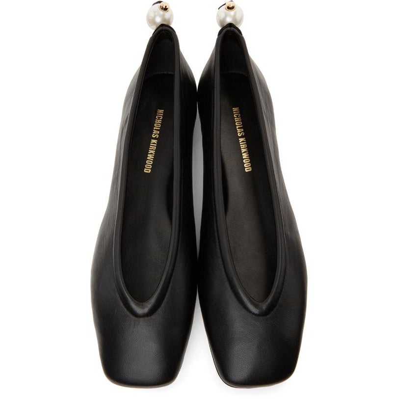 Grained nappa leather ballerina flats in black. Square toe. Drawstring with signature faux-pearl toggle cord fastening at heel collar. Tonal rubber sole. Gold-tone hardware. Supplier color: Black Upper: calfskin. Sole: rubber. Brand: Nicholas Kirkwood