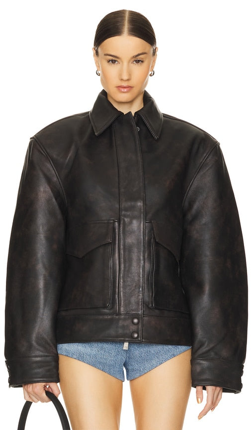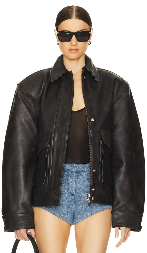 REMAIN Bomber Jacket in Brown. - size 34 (also in 36, 38) REMAIN Bomber Jacket in Brown. - size 34 (also in 36, 38) Self: 100% leather Lining: 100% polyester. Made in India. Professional leather clean only. Front zipper and snap button closure. Front flap pockets with button closure. Heavyweight leather fabric. RAMA-WO13. 501577559. Shop the latest in fashion from REMAIN