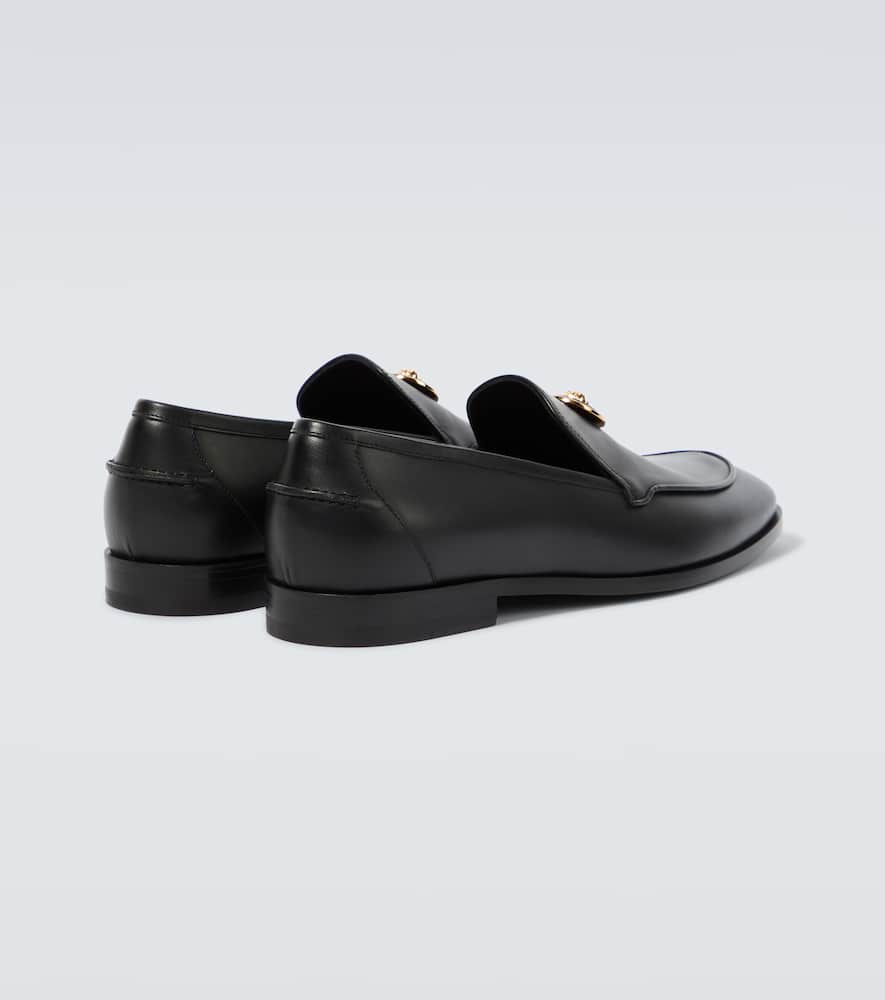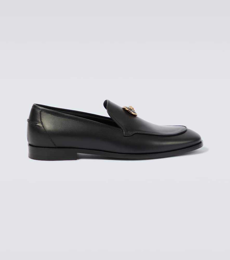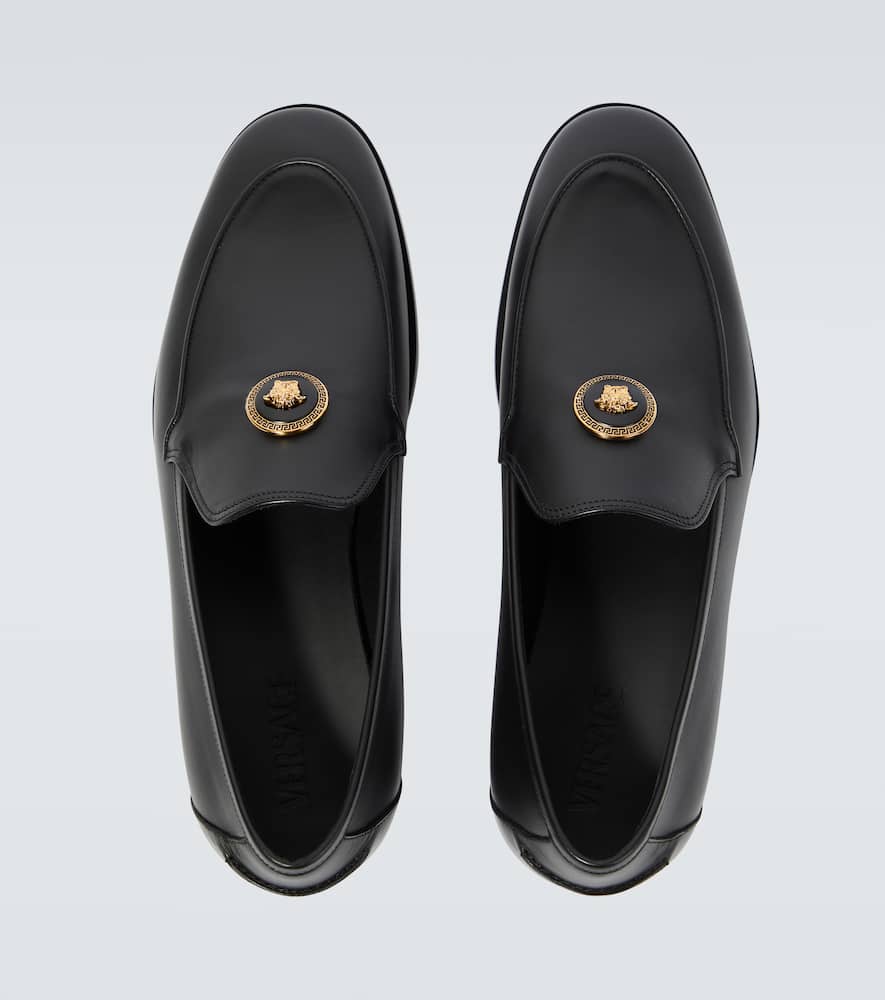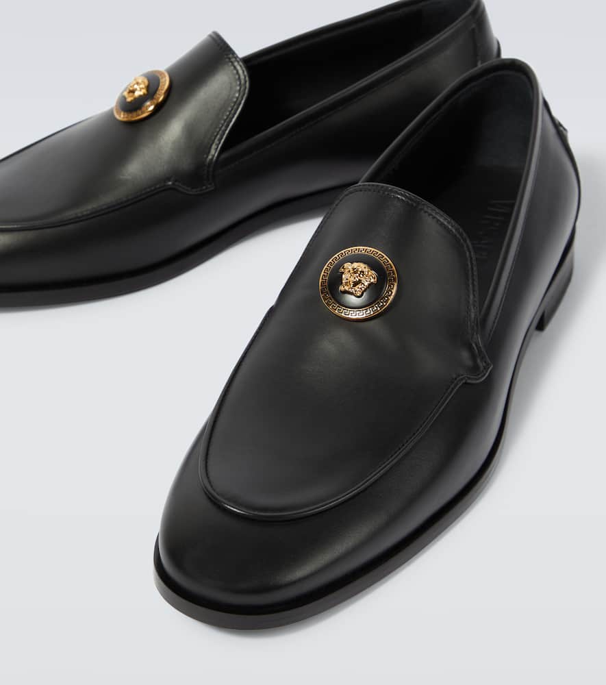 Upper: leather. Lining: leather. Sole: leather insole and sole. Toe shape: round toe. Made in Italy. Includes: shoe box. Designer color name: Black - Versace Gold. Shop Versace Loafers for men and other designer shoes now.